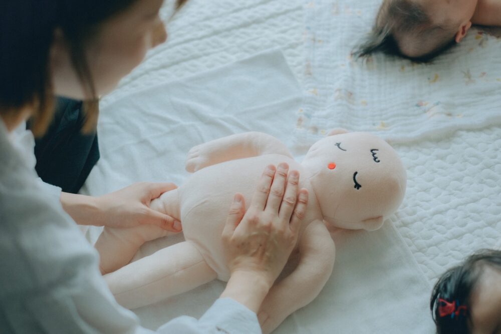 手技は全部で40種類くらいで、背中だけでも5種類、お腹も5~6種類、足の指とかも細かくやるとたくさんあります。でも、全部やろうとすると赤ちゃんもママも疲れてしまうし、ママも覚えられないので数種類の技をお伝えするようにしています。