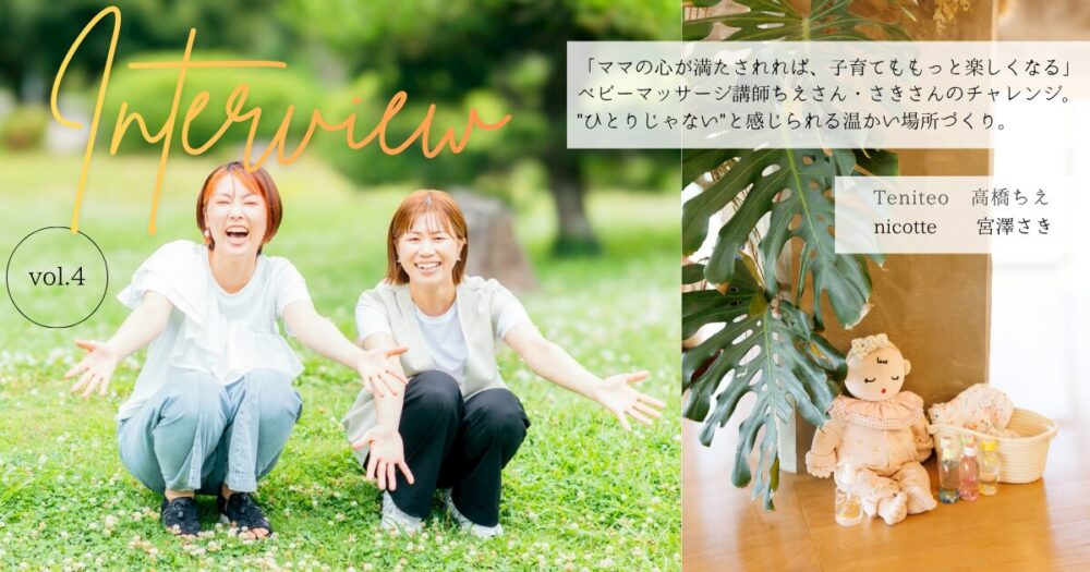 今回は、兵庫県明石市を拠点に活動するベビーマッサージ講師、ちえさんとさきさんのお2人にインタビューさせていただきました。
